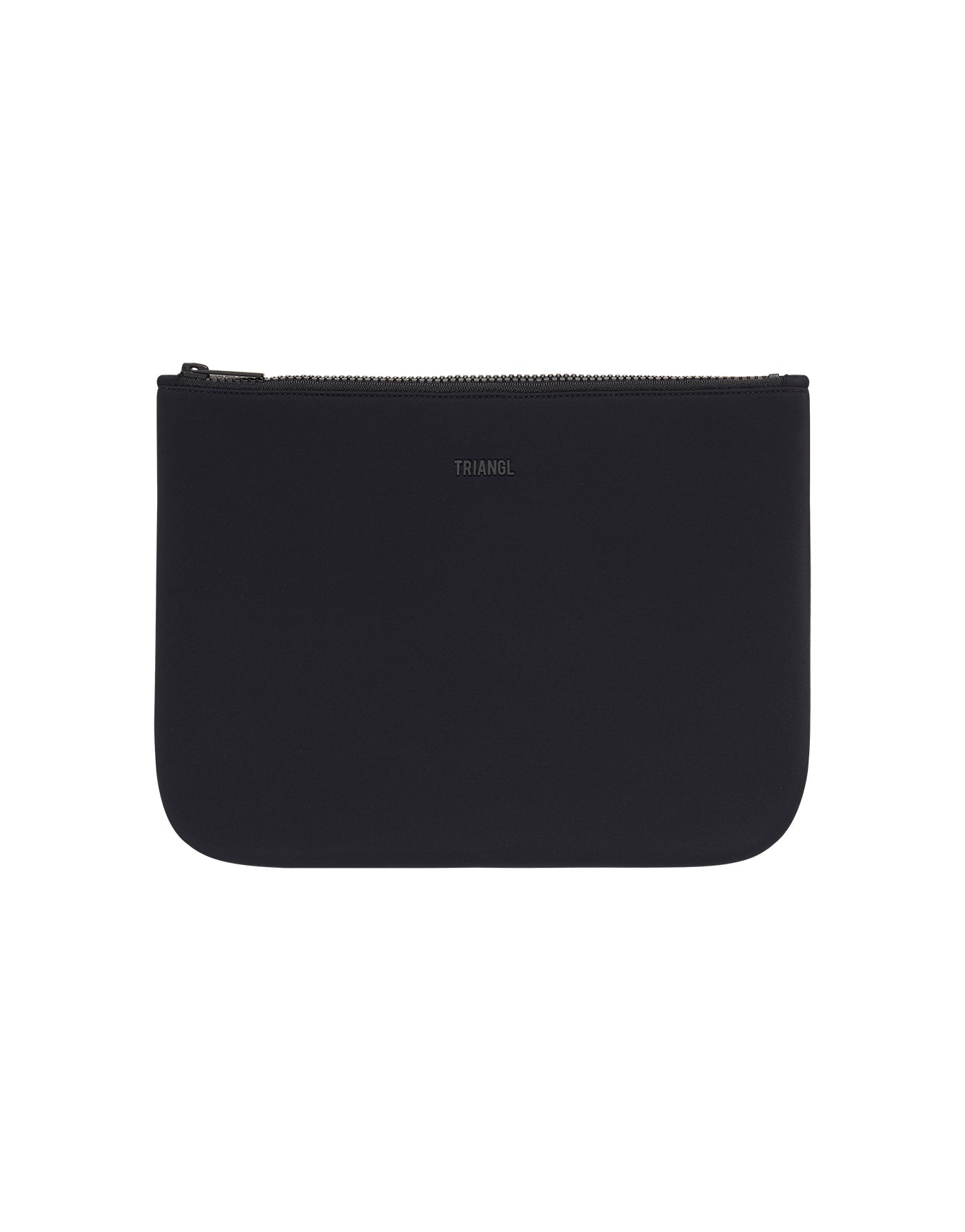 A deep scoop crop bikini top in black with matching mid-high waist bottoms. Strappy crop top with adjustable shoulder straps and back clasp fastening. Choose from either cheekiest. cheeky or normal bottom for a little more coverage. This bikini also comes with a neoprene zip bag.